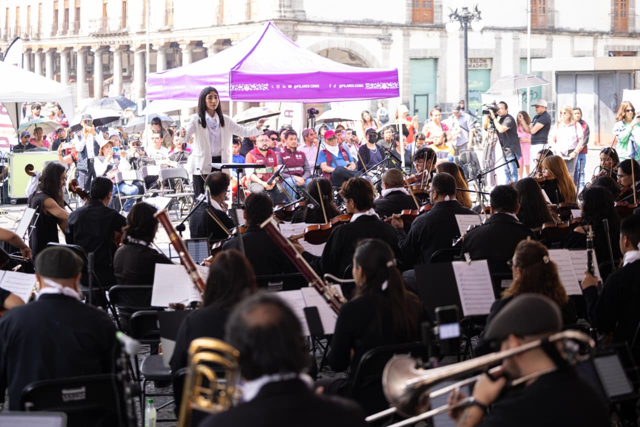 En el marco de la primera jornada de Festivales por la Paz, la Plaza de Santo Domingo, en la alcaldía Cuauhtémoc, se llenó de cantos, música y aplausos con el Concierto por la Paz de la Orquesta 100fónica PILARES, iniciativa de pacificación y recuperación del espacio público, impulsada por el Gobierno de la Ciudad de México y la Estrategia Nacional de Seguridad del Gobierno de Federal.