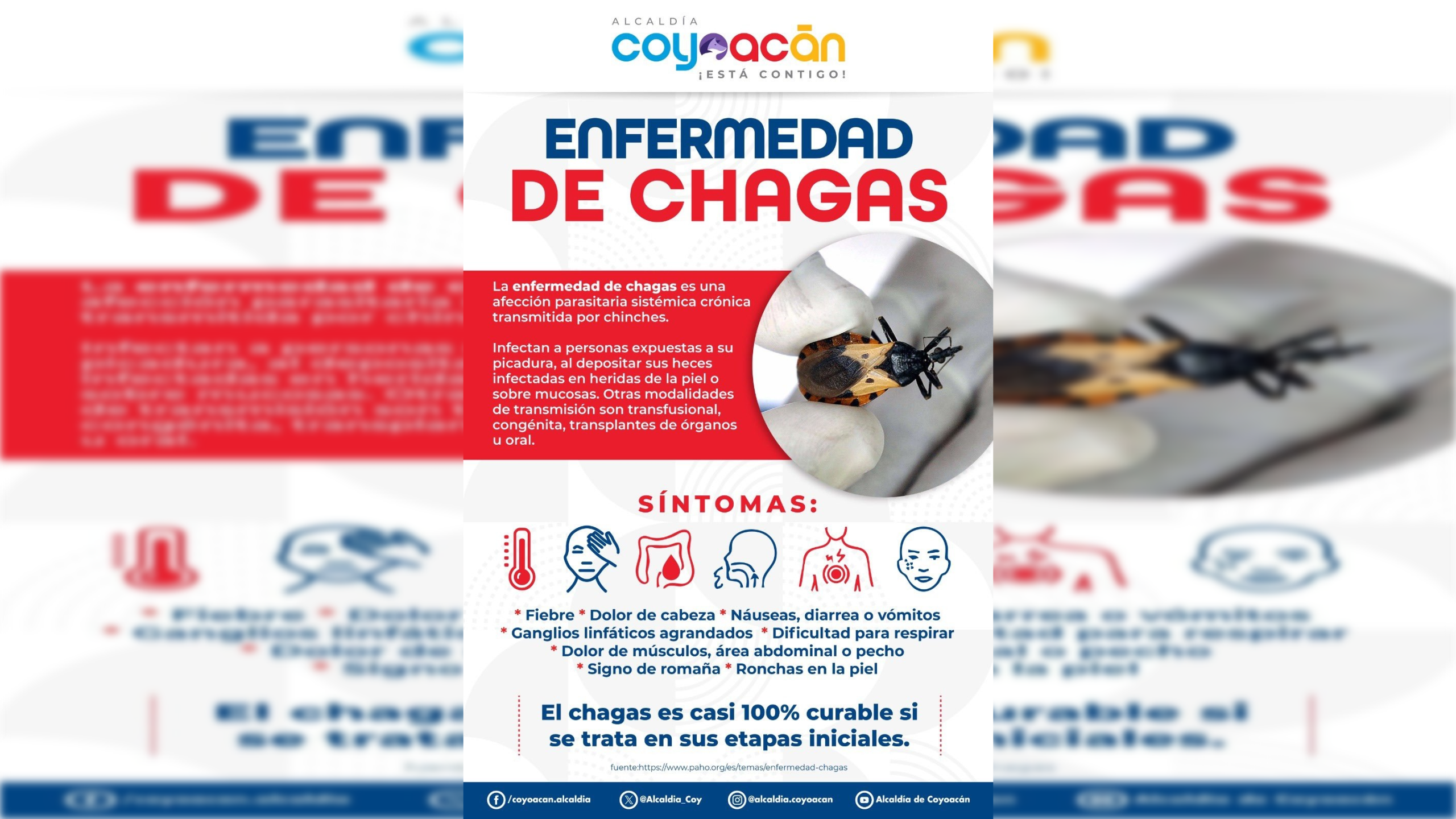 CIUDAD DE MÉXICO 20 DE ABRIL ( CDMX MAGACIN).La Alcaldía Coyoacán que encabeza, el alcalde Giovani Gutiérrez alertó acerca de la enfermedad de “chagas” que es una afección parasitaria sistémica crónica transmitida por chinches.