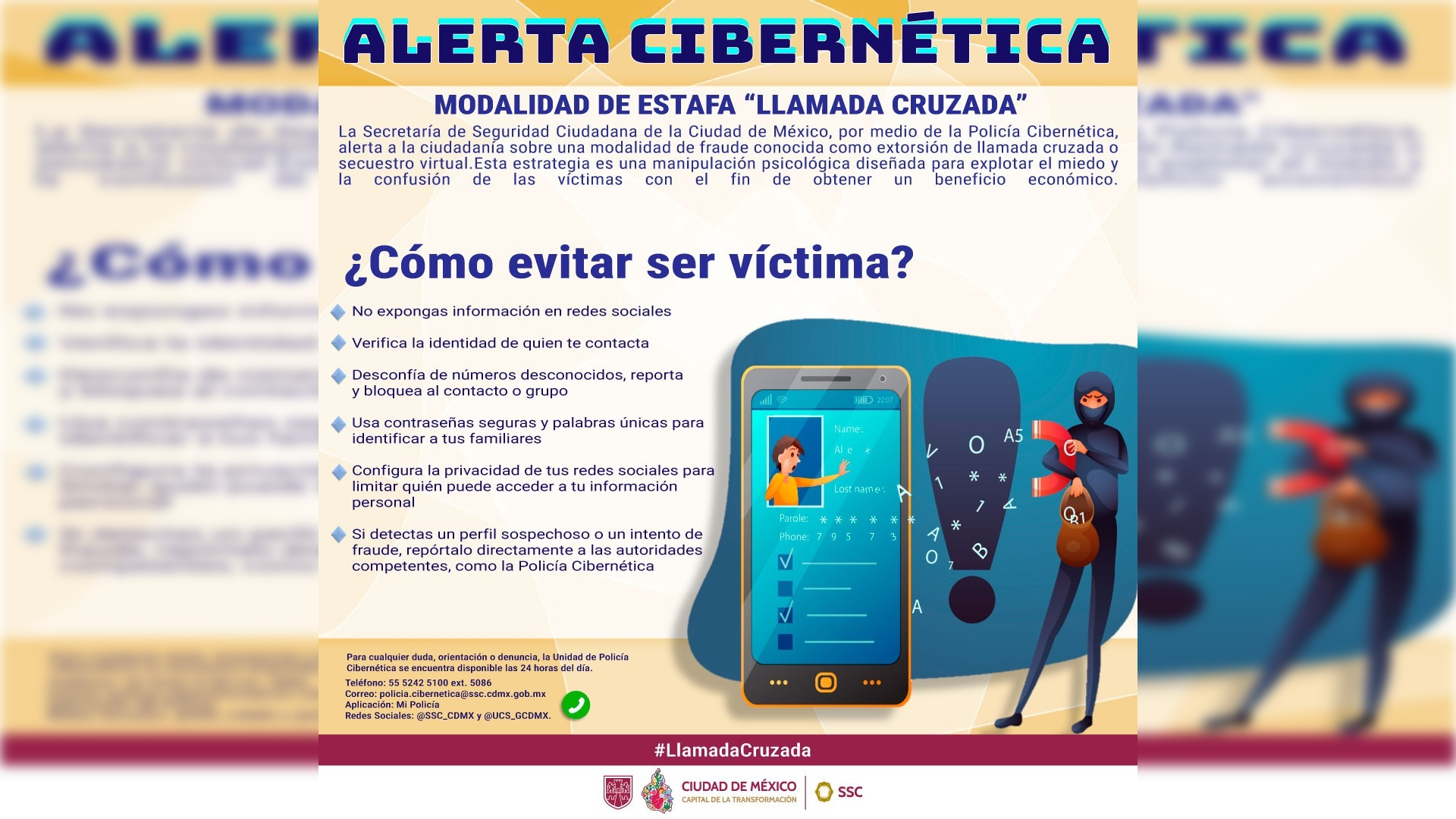 CIUDAD DE MÈXICO 03 DE ABRIL / CDMX MAGACIN).– La Secretaria de Seguridad Ciudadana alerto sobre una modalidad de fraude conocido como “extorsión de llamada cruzada” o denominada “secuestro virtual”.