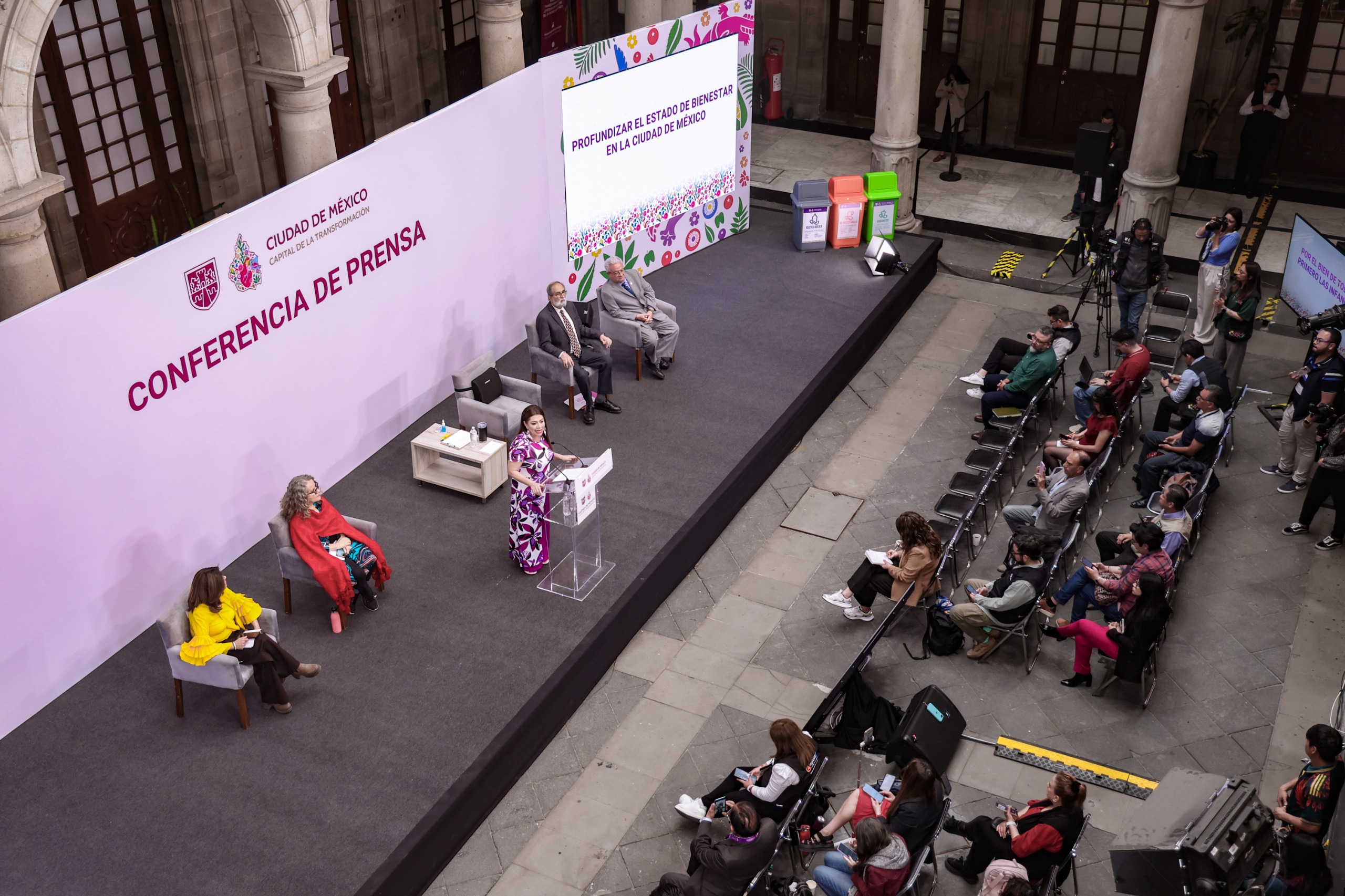 Con respecto a la política social que su administración ha implementado, la jefa del Ejecutivo local dijo que tiene el objetivo es cumplir el mandato constitucional del mínimo vital y del estado de bienestar con la garantía del ingreso y el sistema público de cuidados, como los grandes pilares nuevos de la política social.