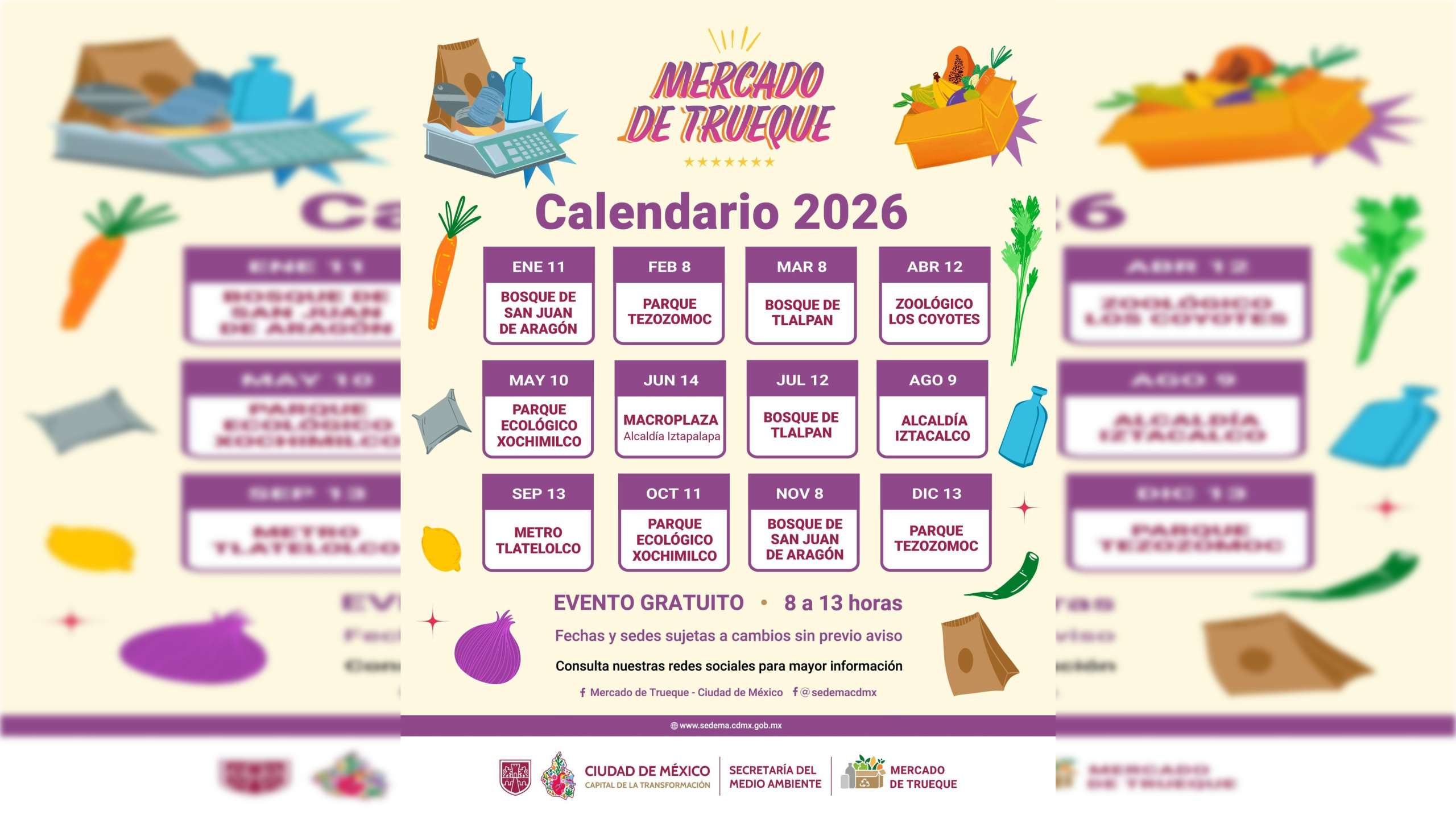 CIUDAD DE MÈXICO 04 DE ENERO ( CDMX MAGACIN).- La Secretaría del Medio Ambiente (SEDEMA) presentó el calendario 2026 del Mercado de Trueque, una iniciativa que invita a la ciudadanía a separar sus residuos y canjearlos por productos sustentables.