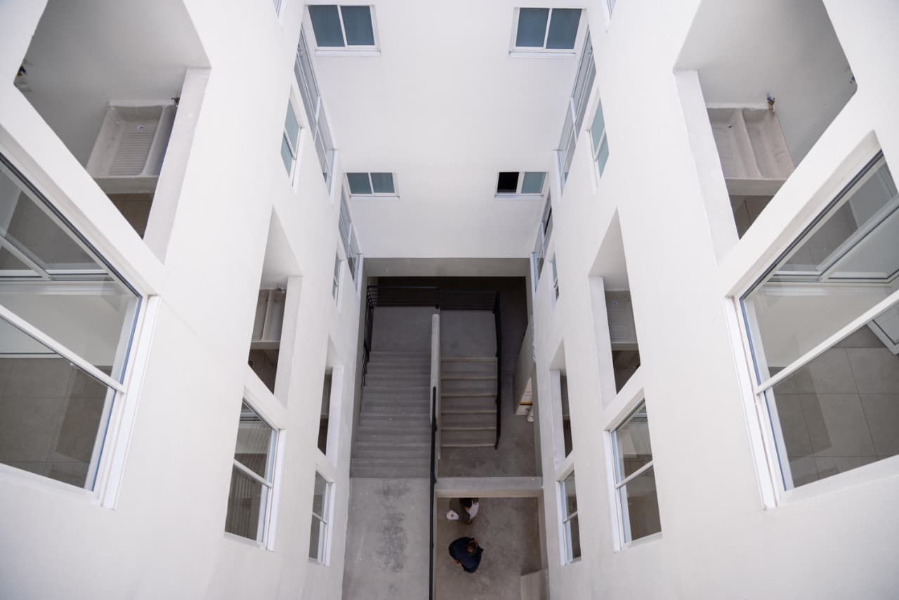 En Nicolás San Juan 304, 21 familias regresaron al mismo punto donde el sismo dejó su edificio al borde del colapso. Tras la reconstrucción total, se entregan departamentos nuevos levantados desde cimientos con instalaciones renovadas, calentadores solares, servicios actualizados y condiciones estructurales certificadas.