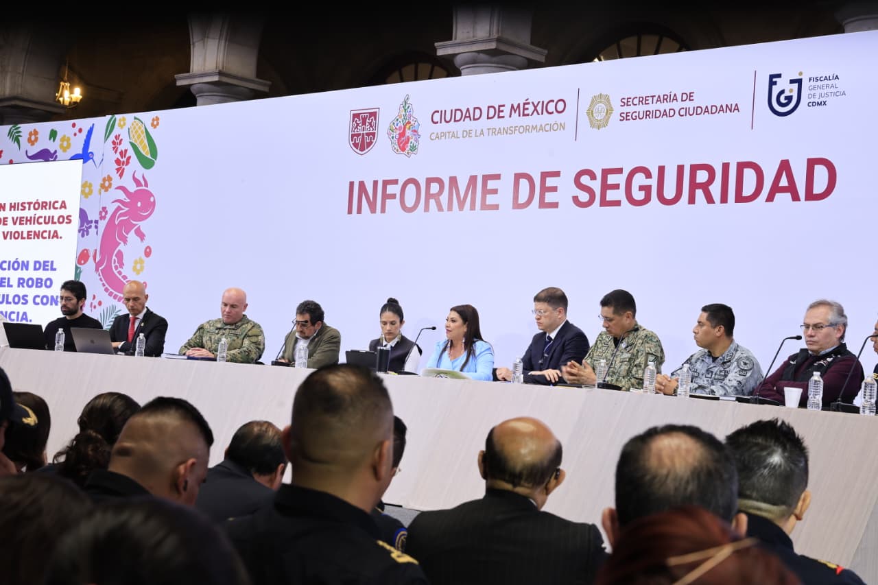 La mandataria capitalina dio a conocer una reducción en el robo de vehículo con violencia del 87 por ciento frente al mes de enero del 2019; y de 53 puntos porcentuales al compararlo con el mismo mes, pero en 2025.