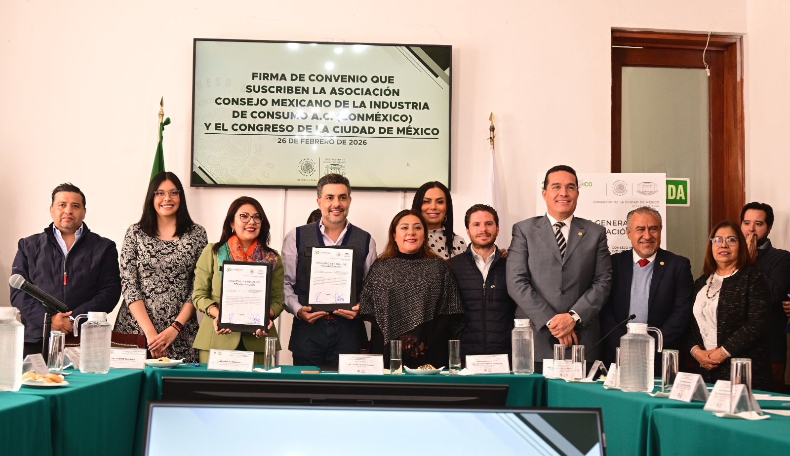 CIUDAD DE MÉXICO 26 DE FEBRERO (CDMX MAGACIN).- El Congreso de la Ciudad de México y el Consejo Mexicano de la Industria de Productos de Consumo (CONMÉXICO) firmaron un convenio de colaboración, con el objetivo de establecer un marco de trabajo conjunto que propicie espacios de diálogo técnico y cooperación en materia de educación ambiental, gestión integral de residuos y adopción de prácticas de economía circular, mediante acciones coordinadas de capacitación, asesoría y comunicación.