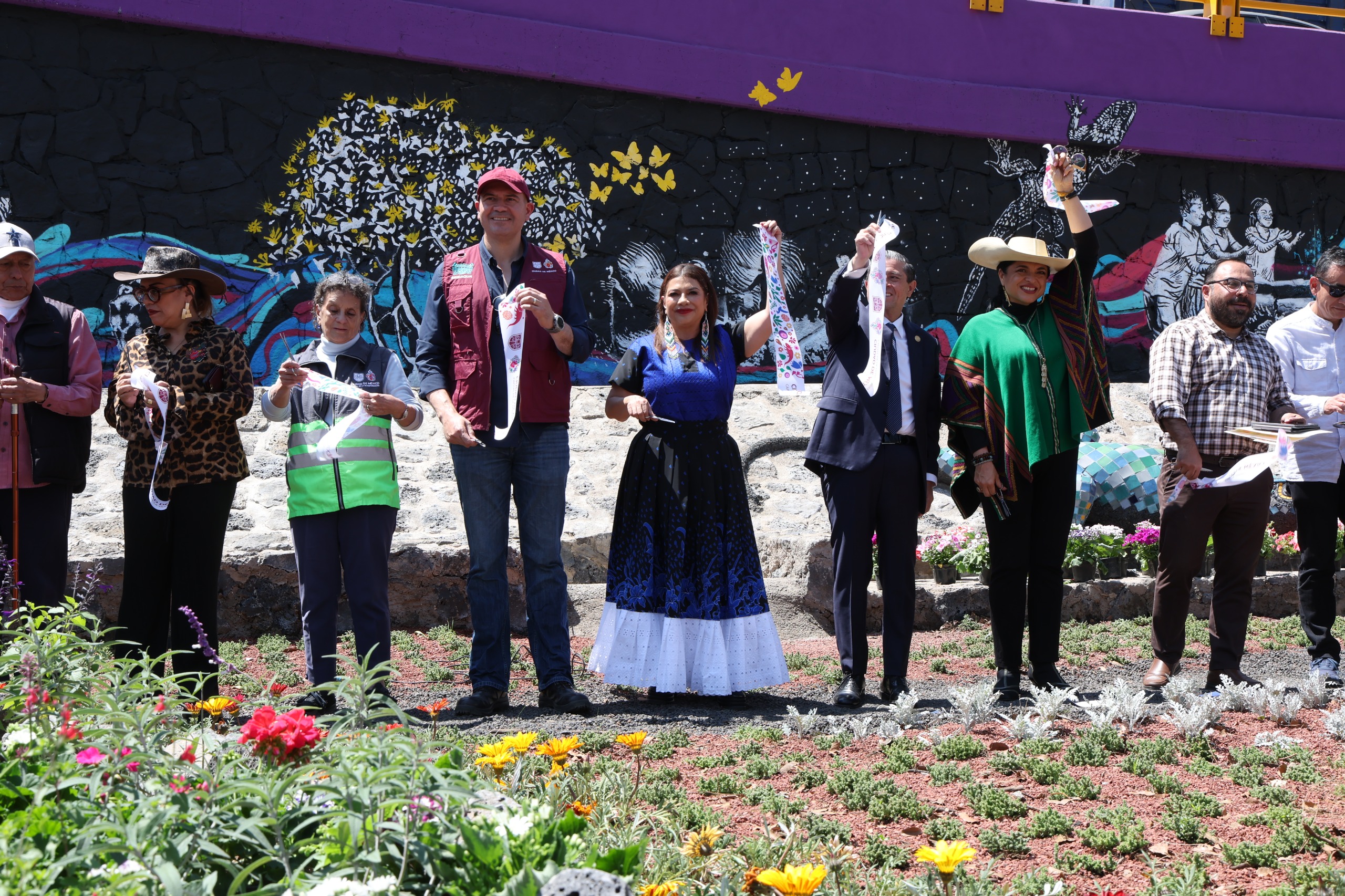 Acompañaron a la jefa de gobierno: las y los titulares de la Secretaría de Turismo, Alejandra Frausto; de Gestión Integral de Riesgos, Myriam Urzúa; la consejera Jurídica, Eréndira Cruzvillegas; el subsecretario de Concertación Política, José García; la directora de la Casa de Gobierno en Coyoacán, Elizabeth Medina, y el vecino Ricardo López.