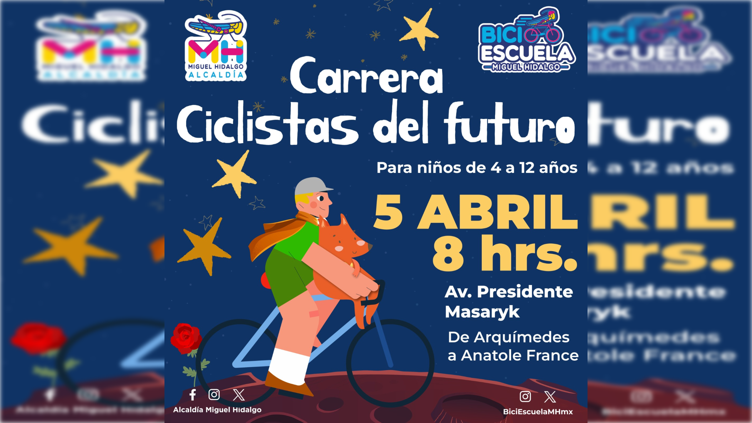 CIUDAD DE MÈXICO 03 DE ABRIL / CDMX MAGACIN).– La Alcaldía Miguel Hidalgo que encabeza, el alcalde Mauricio Tabe invito a la “Carrera Ciclistas del Futuro” el próximo cinco de abril a las 8 de la mañana.