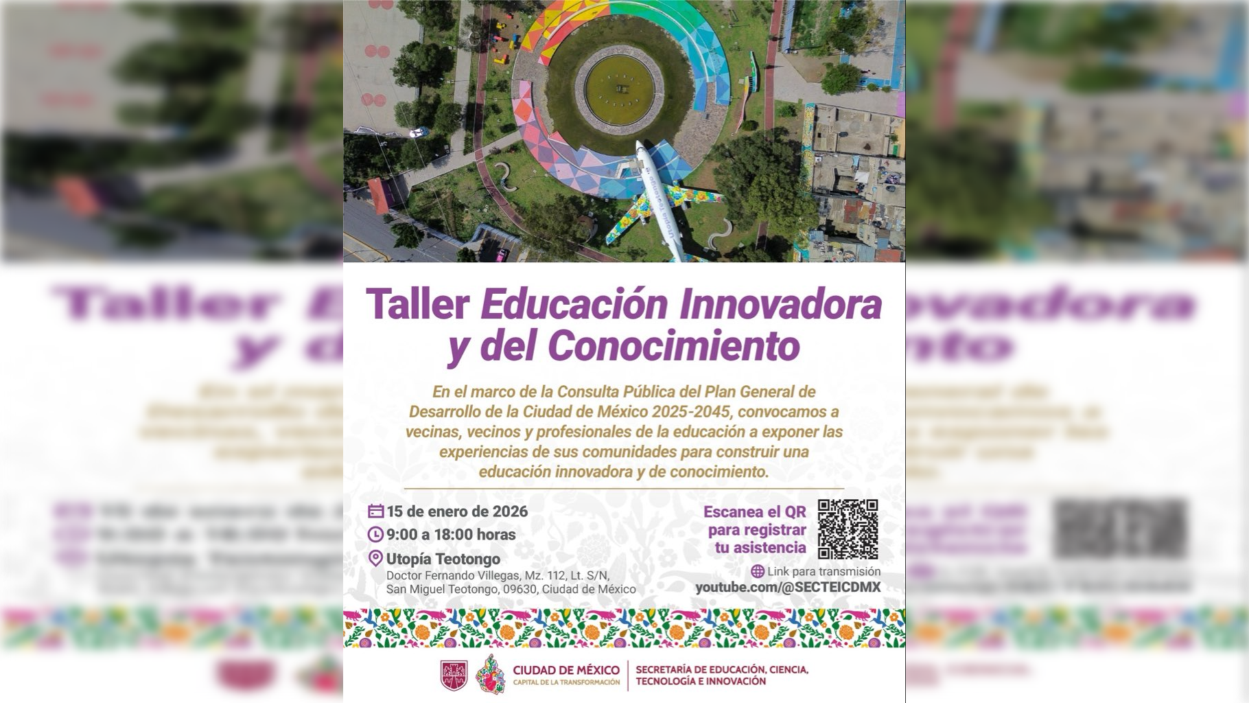 El Taller se llevará a cabo el próximo 15 de enero del 2026 de 9 a 6 de la tarde en la Utopía Teotongo de la Alcaldía Iztapalapa.