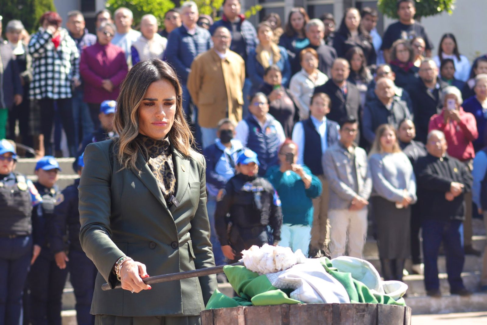 “Hoy no vengo a darles una lección de historia. Hoy vengo a hablar del presente, de lo que sentimos, de lo que vivimos”, expresó ante elementos de seguridad, personal de la alcaldía y ciudadanía.