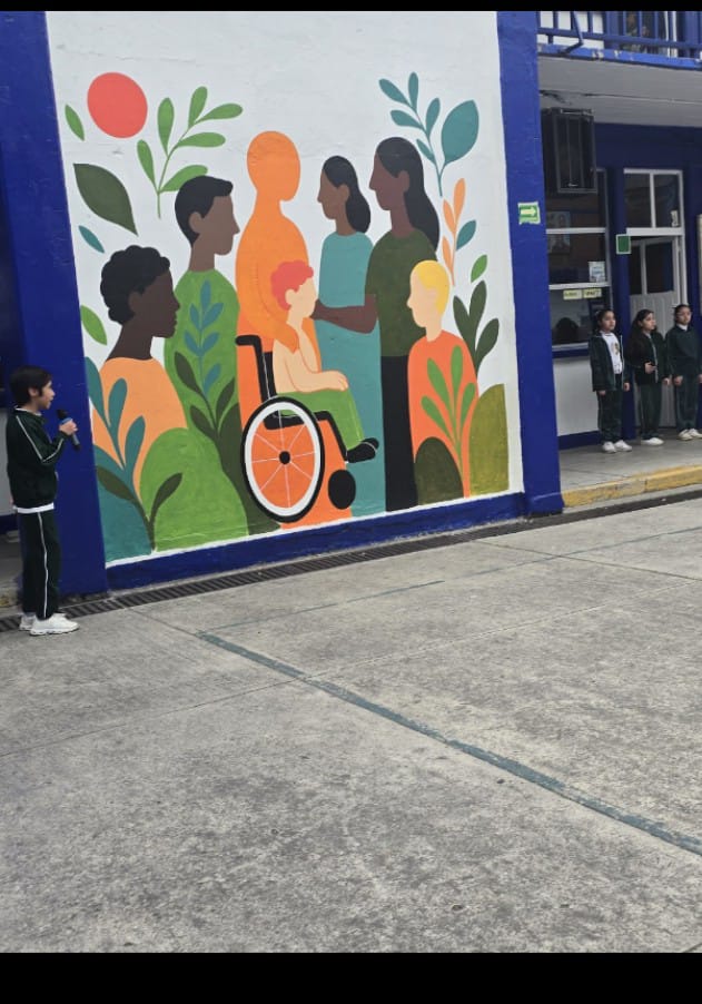 Fue así que pintó un mural plasmando personas, niños y niñas. Rodeados de la naturaleza, ya que las plantas simbolizan la vida y el crecimiento. El mensaje profundo es la representación de una escuela incluyente.