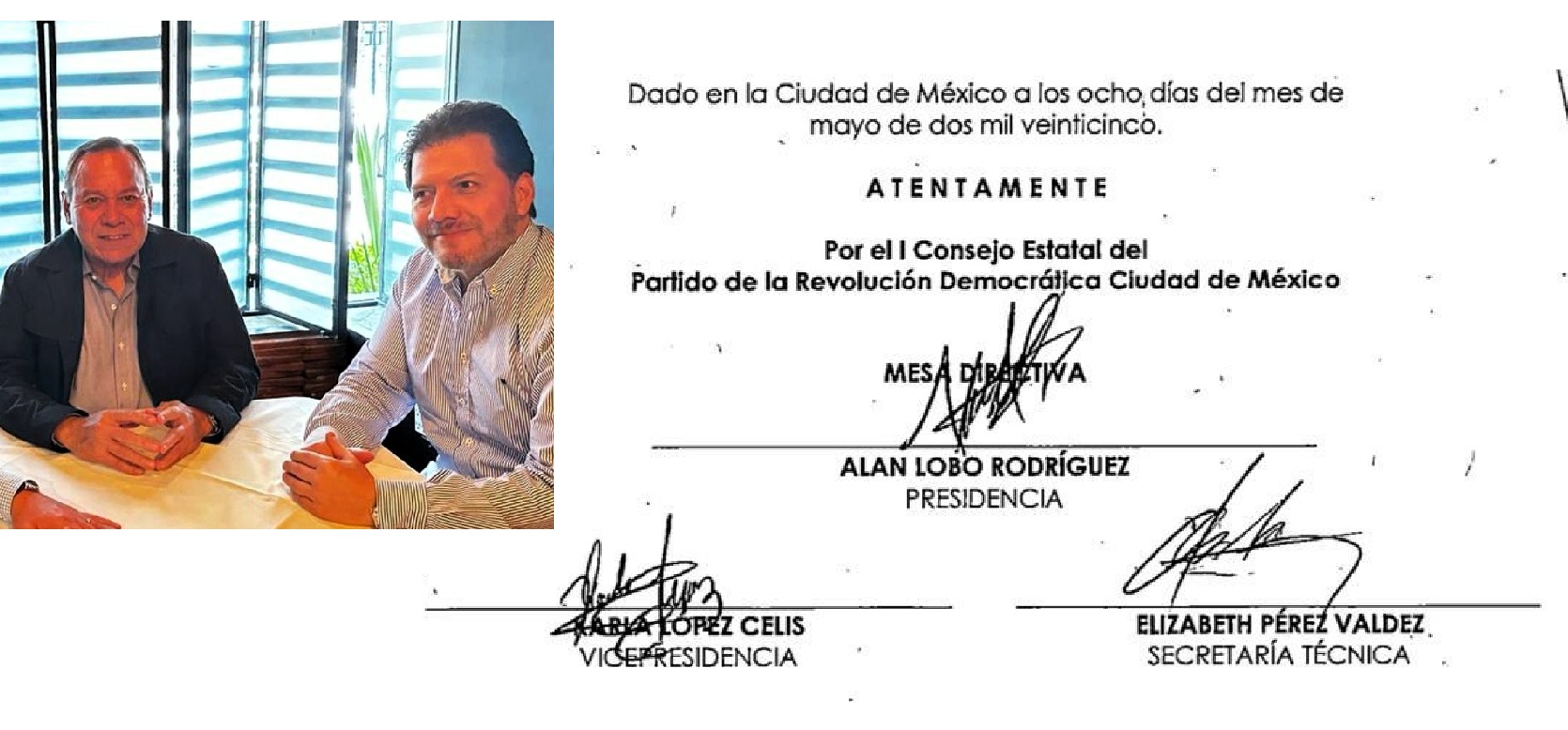 Este jueves, en la columna Mensaje Político, su autor Alejandro Lelo de Larrea refirió tener en su poder documentos que prueban que Jesús Zambrano y el diputado federal de Morena, Víctor Hugo Lobo Román, como botín de saqueo, ya se habían repartido los cargos en el PRD Ciudad de México, que le pretendían arrebatar a su legal y legítima presidenta, Nora Arias, pero también a su militancia. El documento es un dictamen del espurio “Consejo Estatal”, de supuesto cambio de estatutos, fechado el 25 de mayo de 2025 y firmado por “Alan Lobo Rodríguez, presidencia” del Consejo Estatal, quien tiene 21 años de edad y nula experiencia política. También aparecen las firmas de Elizabeth Pérez Valdez, operadora política y electoral de Jesús Zambrano, como secretaria técnica, y Karla López Celis, quien era la recepcionista de la oficina de Lobo Román, como vicepresidenta. Tal documento es parte de los que entregaron al IECM, con los cuales querían sorprender al organismo para apoderarse del PRD Ciudad de México, pero sobre todo de lo que más les interesa, las jugosas prerrogativas, que provienen del erario. Otra vez: pues no se les hizo.