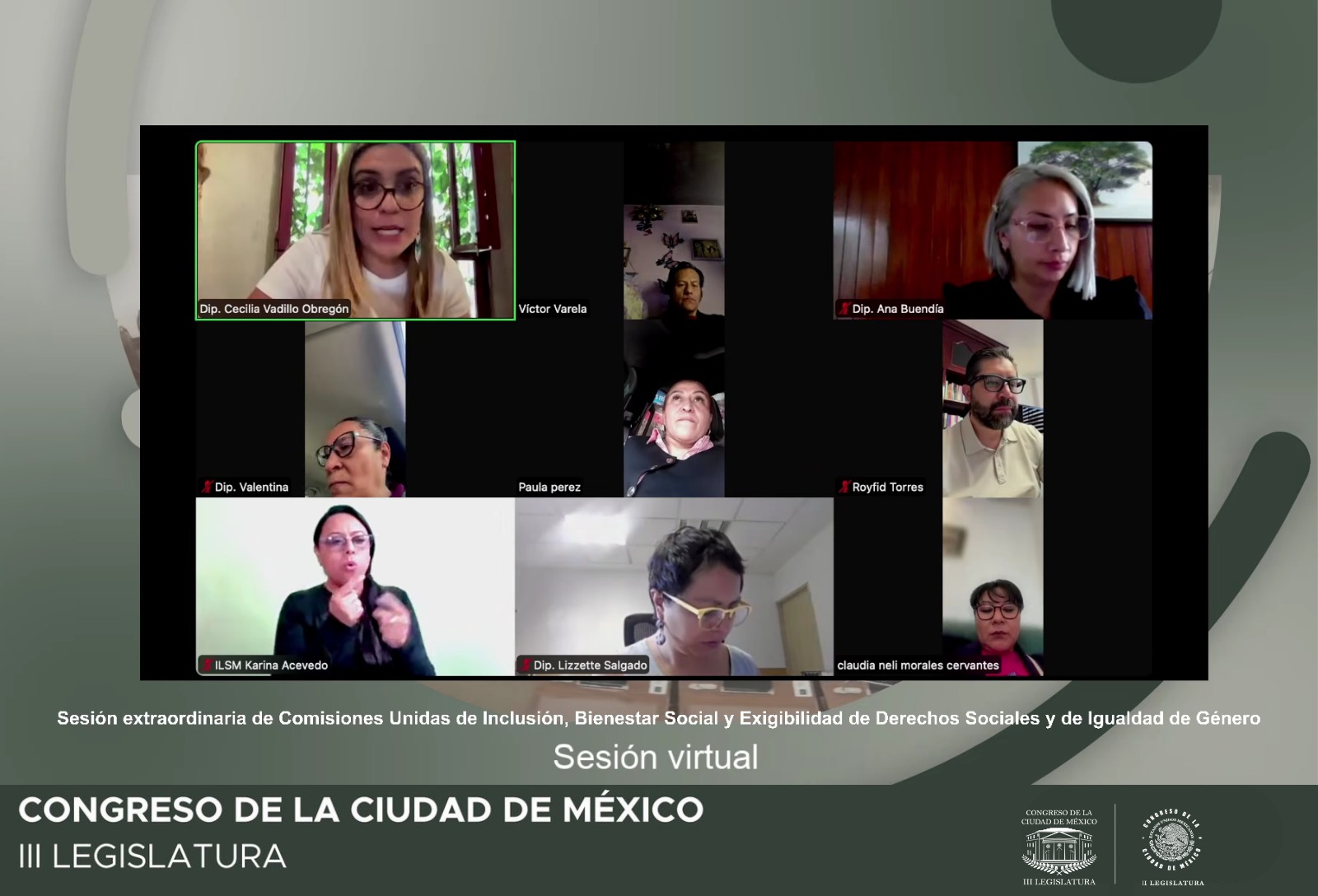 En Sesión Extraordinaria virtual de las Comisiones Unidas de Inclusión, Bienestar Social y Exigibilidad de Derechos Sociales, y de Igualdad de Género, los diputados Víctor Varela y Cecilia Vadillo presidentes de dichas instancias, respectivamente, informaron sobre las cifras de la etapa previa de consulta del Sistema de Cuidados.